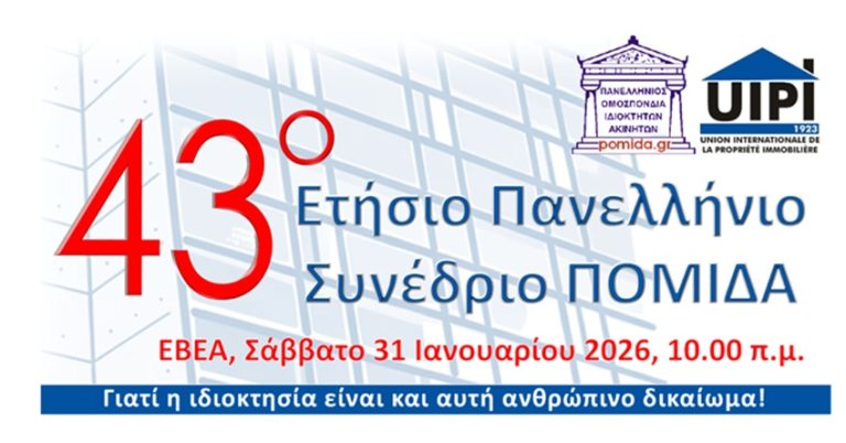 Το Σάββατο, 31η Ιανουαρίου 2026, 10.00 – 14.00, θα διεξαχθεί στο Εμπορικό και Βιομηχανικό Επιμελητήριο Αθηνών (ΕΒΕΑ, Αίθουσα ΕΡΜΗΣ), Ακαδημίας 7, Αθήνα, το 43ο ετήσιο Πανελλήνιο Συνέδριο της ΠΟΜΙΔΑ, με τα εξής θέματα: